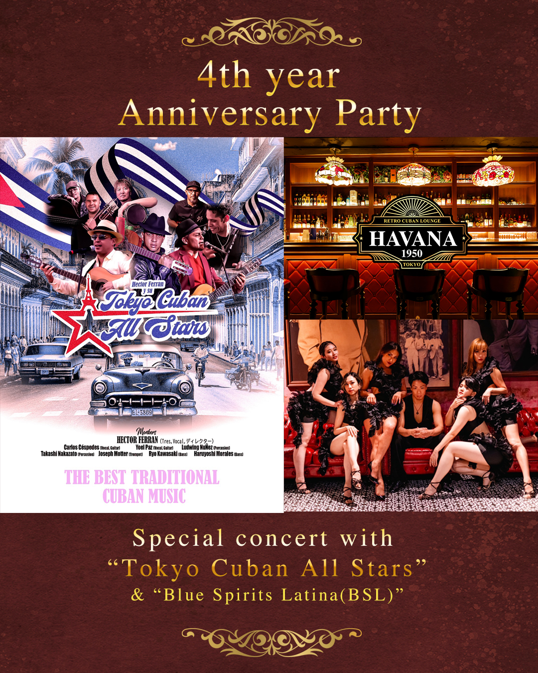 東京キューバンオールスターズは、作曲家でマルチインストゥルメンタリストのHéctor Ferrán(エクトル・フェラン)が設立したバンドで、キューバと日本のミュージシャンが集結しています。伝統的なキューバ音楽の本格的で活気ある演奏で聴衆を魅了し続け、ラテンリズムの普遍的な魅力を示しています。
